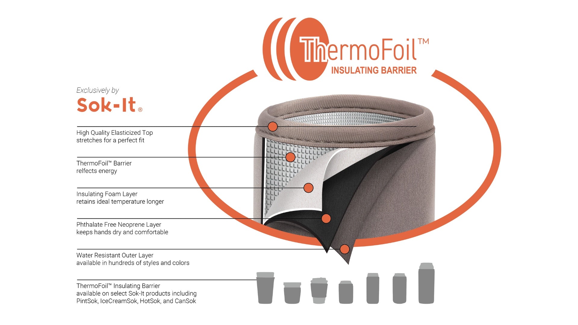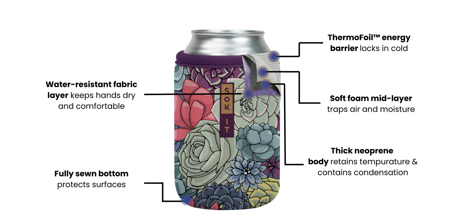 CanSok is a precise fitting, super-insulating Personal Beverage Cooler equipped with our Thermofoil™ protective barrier that keeps drinks cold longer.