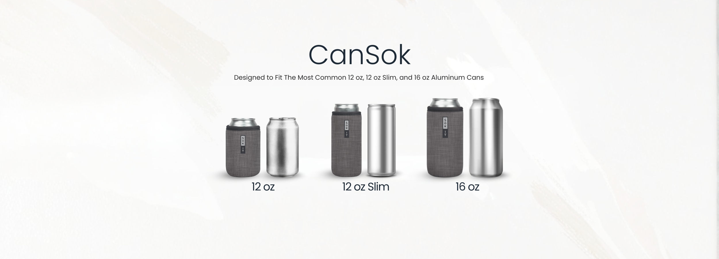 CanSok is designed to fit standard canned beverages. It’s available in multiple sizes to accommodate common 12 oz, 12 oz slim, and 16 oz cans.