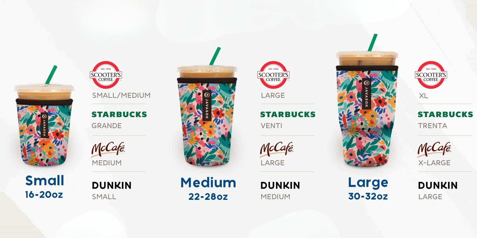 Available in multiple sizes to fit a wide range of popular disposable cups, JavaSok’s snug, stretch-fit design ensures a precise fit your customers will appreciate.
