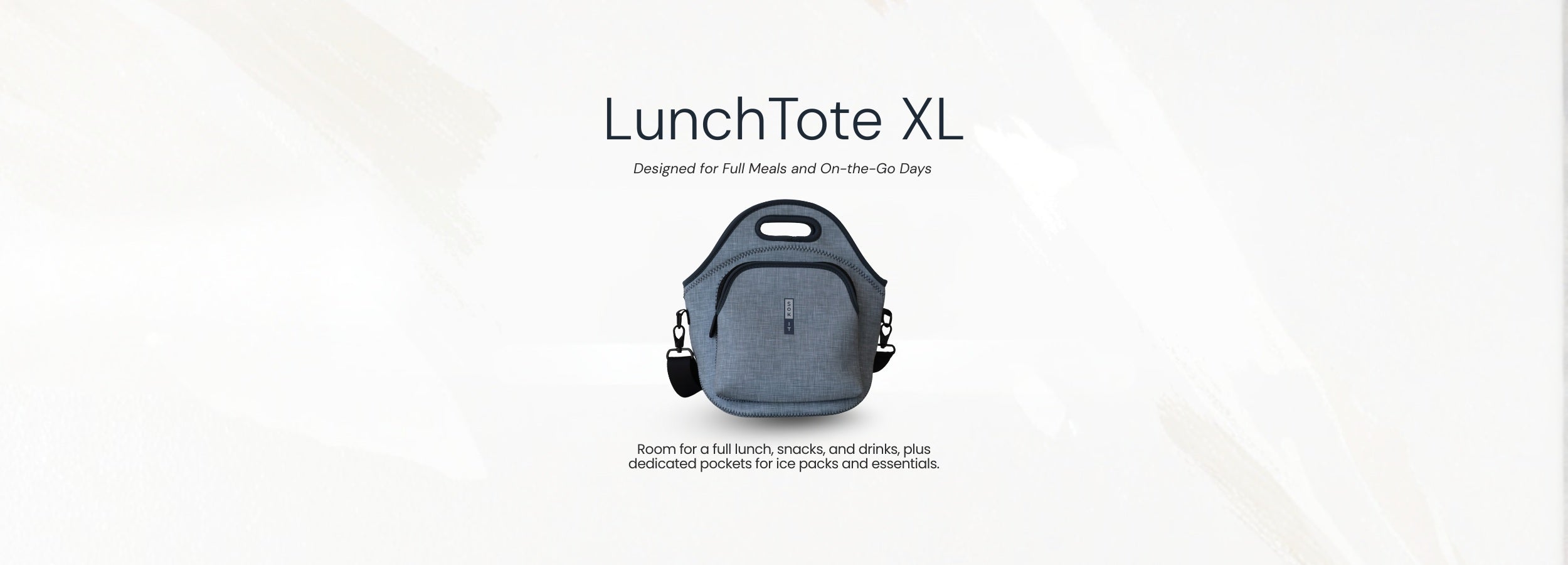 LunchTote XL comfortably fits a full lunch container, drink, ice pack, and additional snacks—with room to spare.